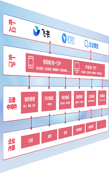 对协作平台提供支持服务,,,支持企业应用与协作平台对接,,,,包含组织同步、、消息集成、、、、待办集成等。。。。支持目前主流的协作平台:钉钉、、、企微和飞书。。。